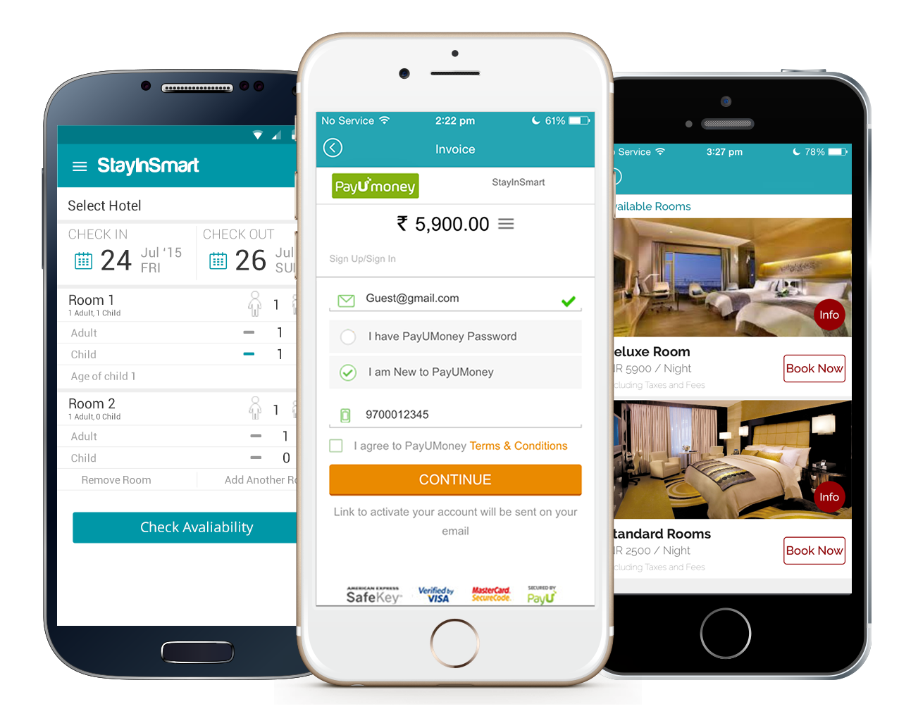 StayInSmart is a smart solution to elevate the bar of luxury of your hotel to sky-scraping heights. An innovative, full-service concierge, easy-to-use, integrated Mobile App, StayInSmart serves as a Digital Companion for the Hotel Guests – to Book Rooms, Remote Check-In, Control Appliances in the Room, Unlock Doors, Order Food, Book Cab and more – all with the swipe of a finger!